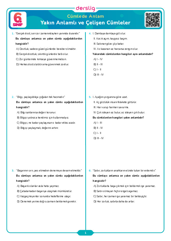 Yakın Anlamlı ve Çelişen Cümleler