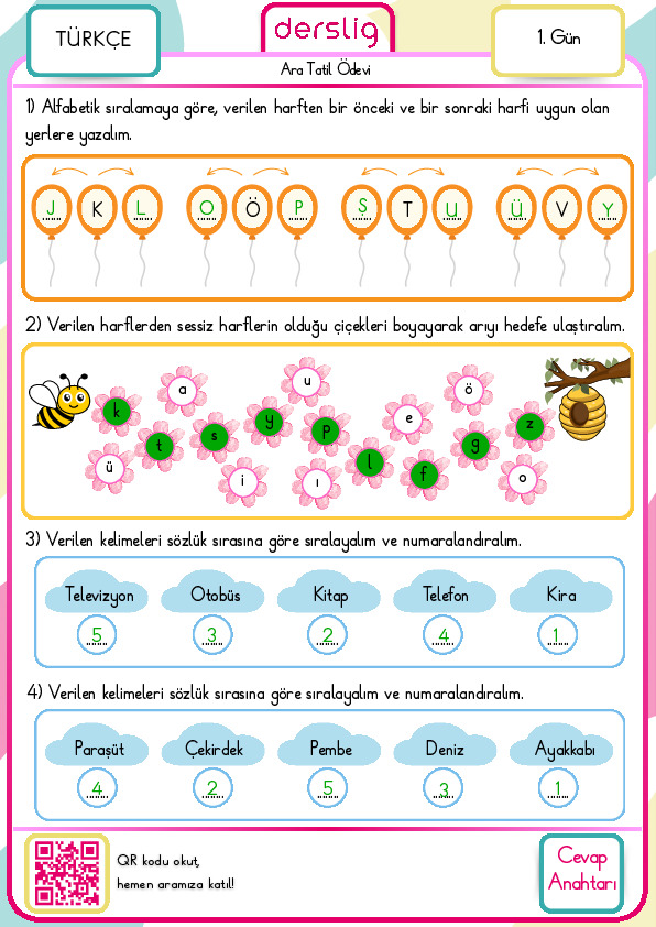 1. sınıf 4. hafta ödevi cevap anahtarı