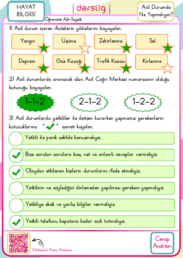 1. Sınıf Afet Türlerini Tanıyalım Cevap Anahtarı
