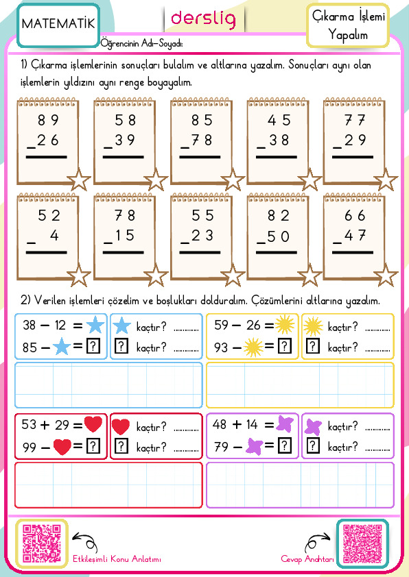 Çıkarma İşlemi İle İlgili Problem Çözelim