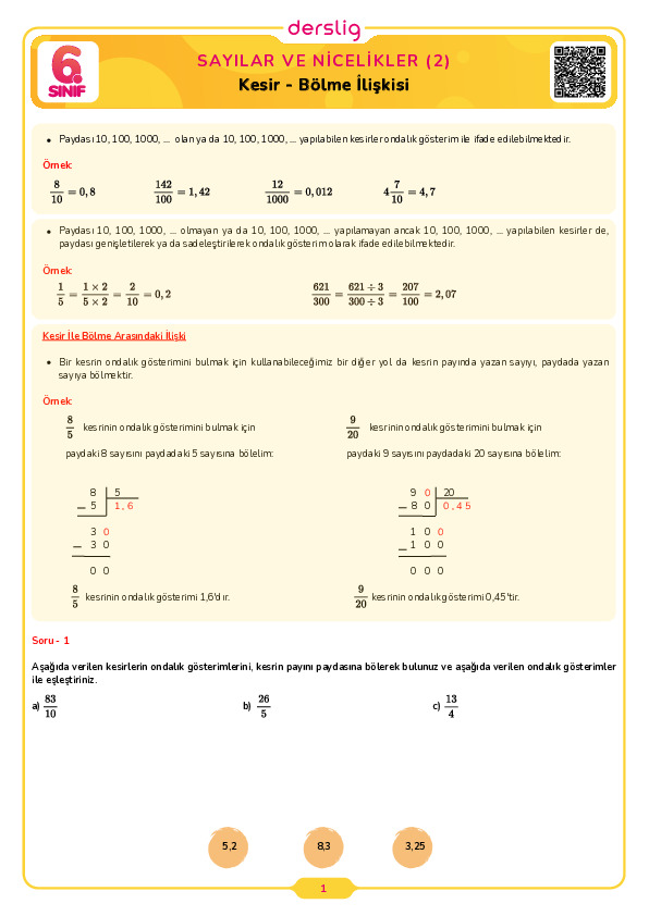 Ondalık Gösterimlerde Basamak Değeri ve Çözümleme