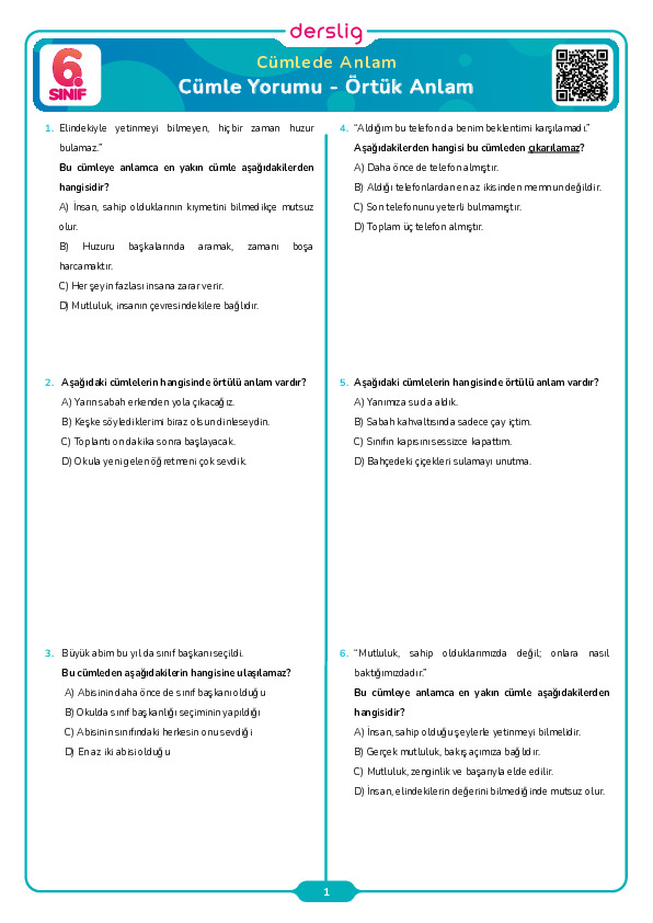 Cümle Oluşturma - Cümle Tamamlama - Cümle Birleştirme