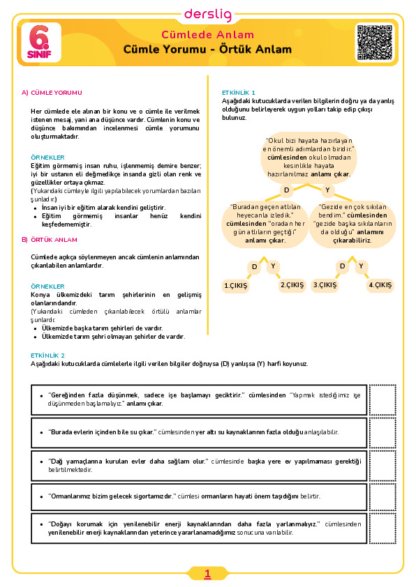 Cümle Yorumu - Örtük Anlam