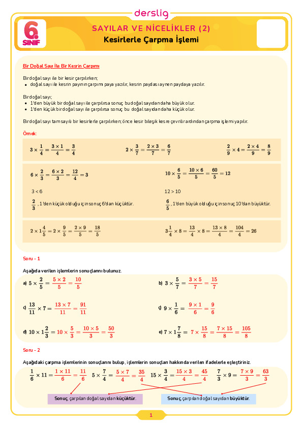 6. Sınıf 1. Tema 1. Konu Özeti(Bir Doğal Sayının Çarpanları ve Katları) Cevap Anahtarı