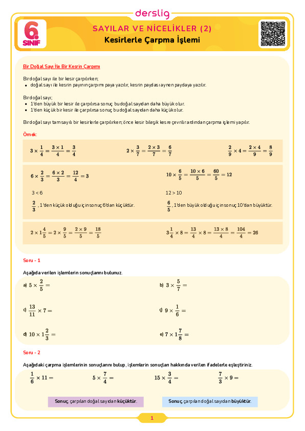 Kesirlerle Toplama ve Çıkarma İşlemleri