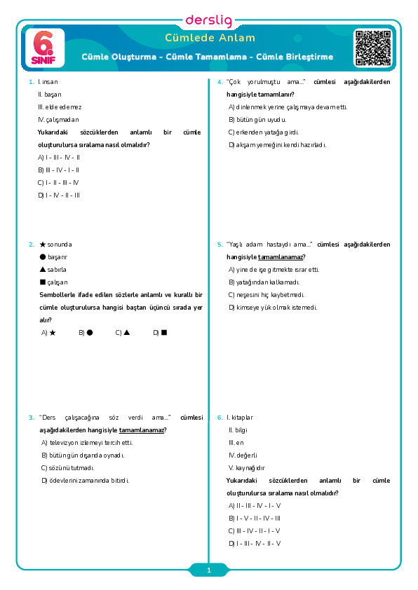 Cümle Oluşturma - Cümle Tamamlama - Cümle Birleştirme