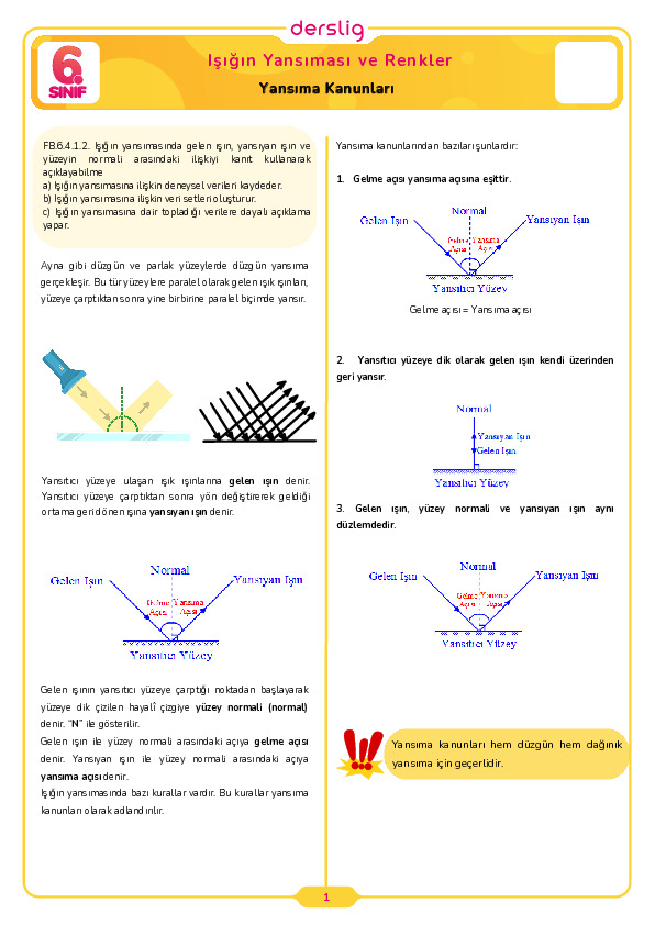 5. Sınıf 1. Tema 7. Konu Özeti (Doğruların durumları) Cevap Anahtarı