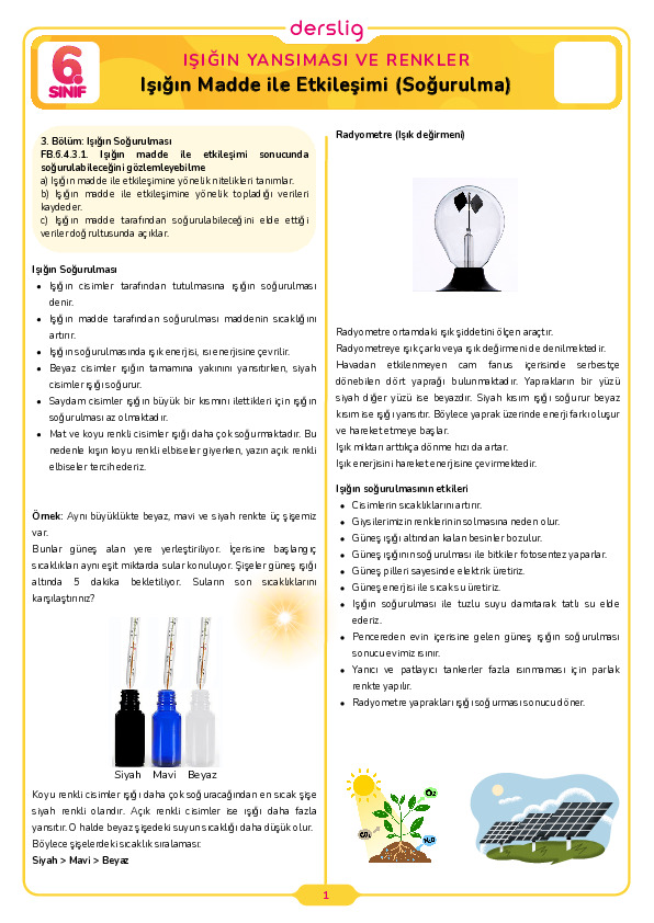 6. sınıf 4. ünite madde ve ısı testi cevap anahtarı