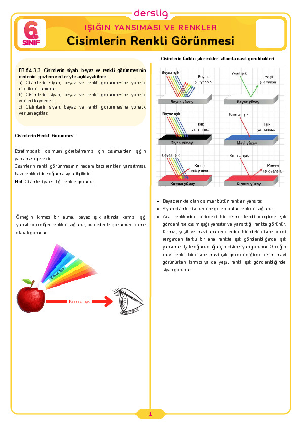 5. Sınıf 1. Tema 7. Konu Özeti (Doğruların durumları) Cevap Anahtarı