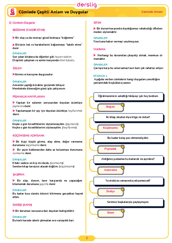 2. Sınıf 6. Hafta Cevap Anahtarı