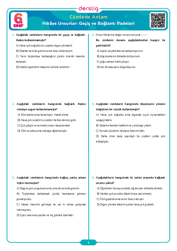 Hikâye Unsurları Geçiş ve Bağlantı İfadeleri