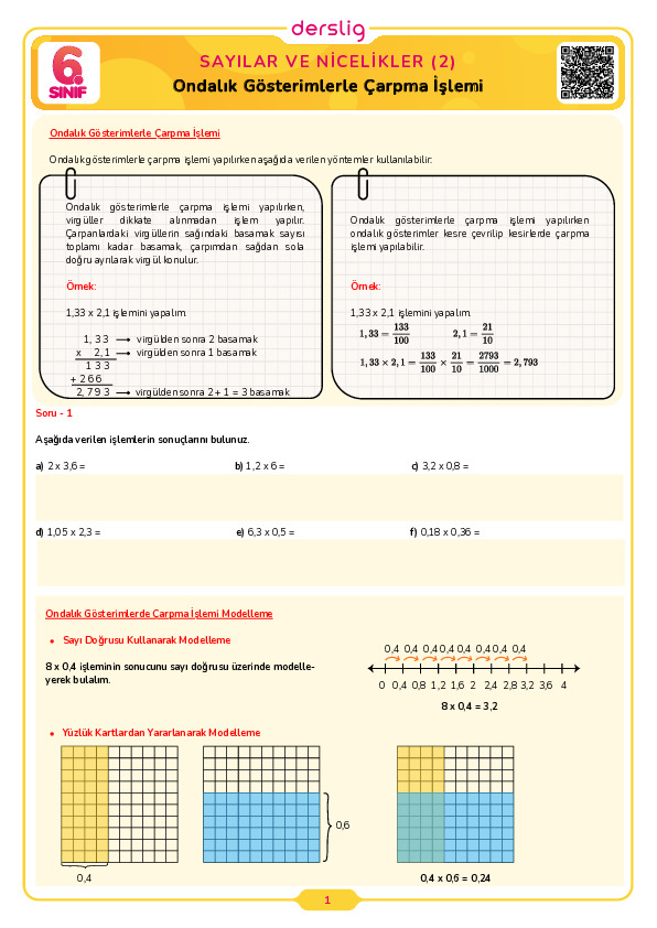 Ondalık Gösterimlerle Çarpma İşlemi
