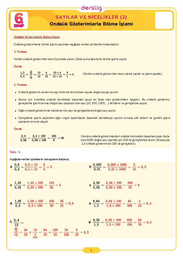6. Sınıf 1. Tema 1. Konu Özeti(Bir Doğal Sayının Çarpanları ve Katları) Cevap Anahtarı