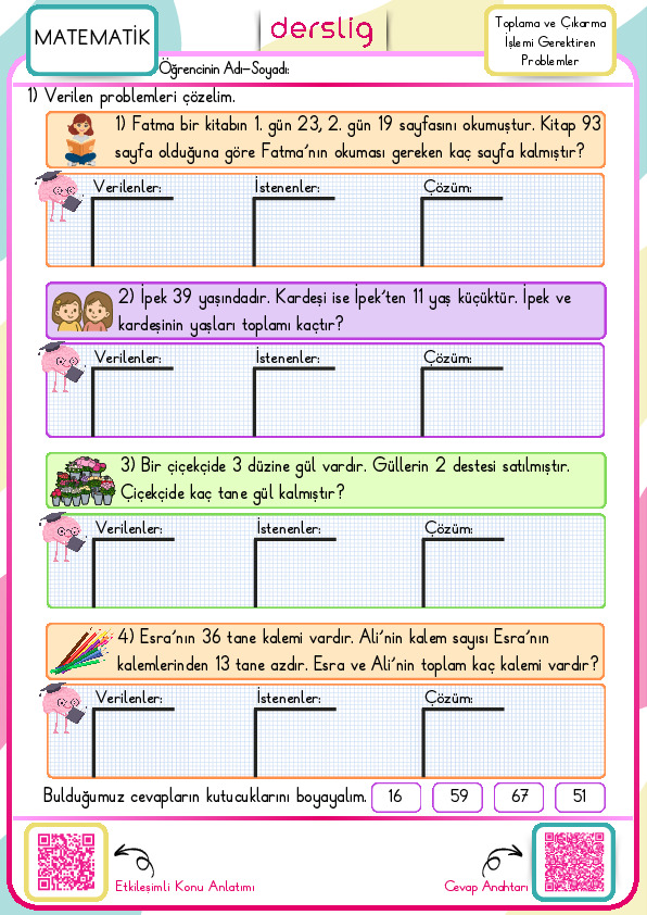 Çıkarma İşlemi İle İlgili Problem Çözelim