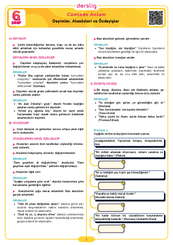 Deyimler, Atasözleri ve Özdeyişler