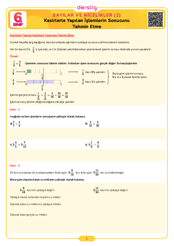 Kesirlerle Yapılan İşlemlerin Sonucunu Tahmin Etme