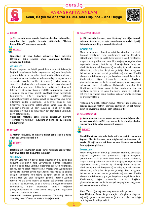 Konu, Başlık ve Anahtar Kelime Ana Düşünce - Ana Duygu