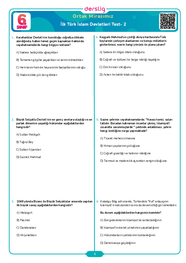 İlk Türk İslam Devletleri Test- 1