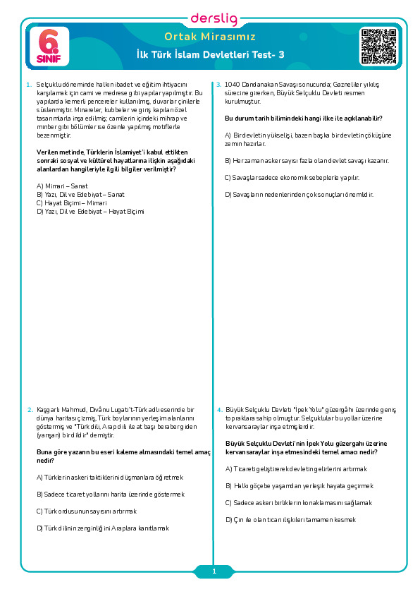İslamiyet'in Kabulüyle Birlikte Yaşanan Değişim Test- 3