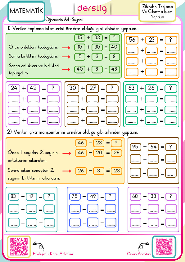 Zihinden Toplama ve Çıkarma İşlemi Yapalım