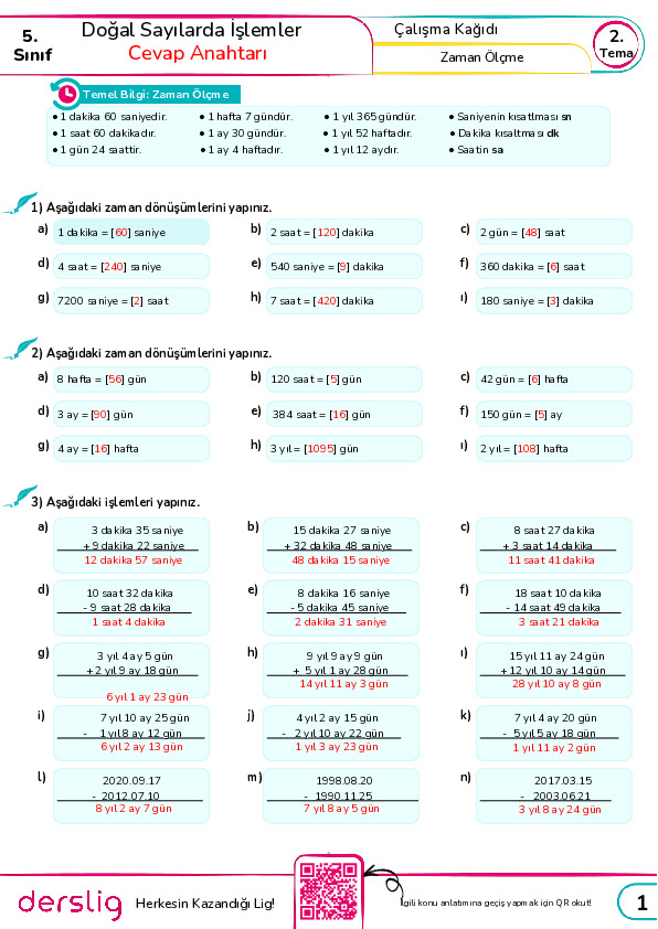 5. Sınıf 2. Tema 18. Konu Özeti (Zaman Ölçme) Cevap Anahtarı