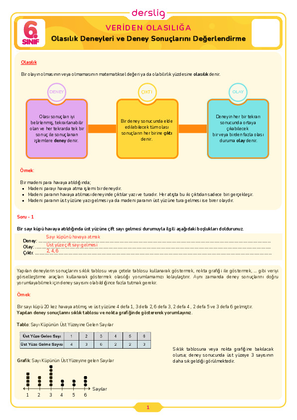6. Sınıf 1. Tema 1. Konu Özeti(Bir Doğal Sayının Çarpanları ve Katları) Cevap Anahtarı