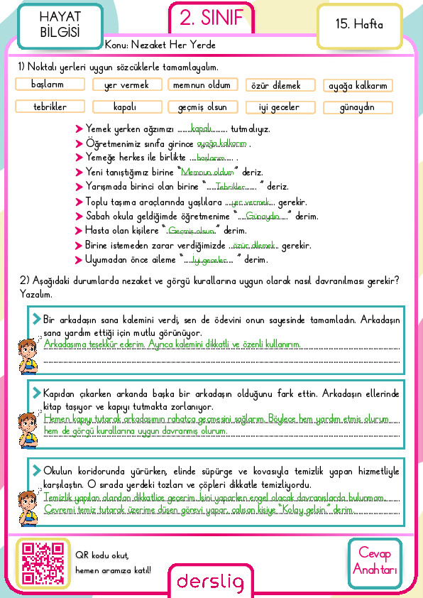 2. Sınıf Nezaket Her Yerde Cevap Anahtarı