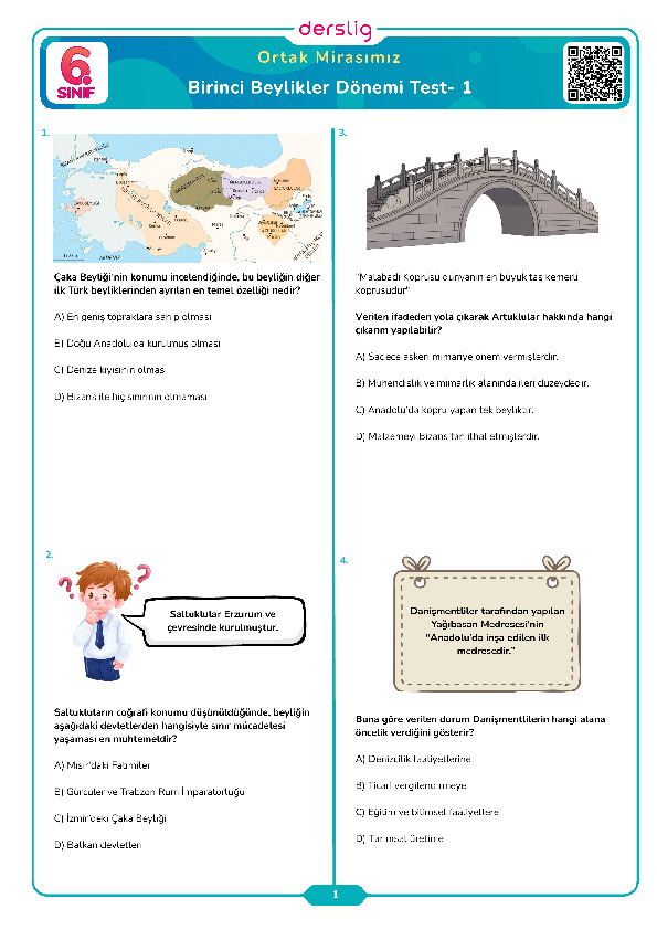 Anadolu'nun Yurt Edinme Süreci Test- 1