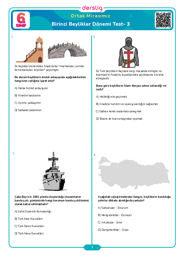 Birinci Beylikler Dönemi Test- 1
