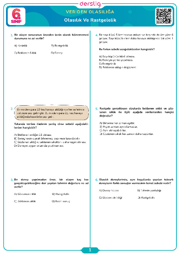 Olasılık Deneyleri ve Deney Sonuçlarını Değerlendirme