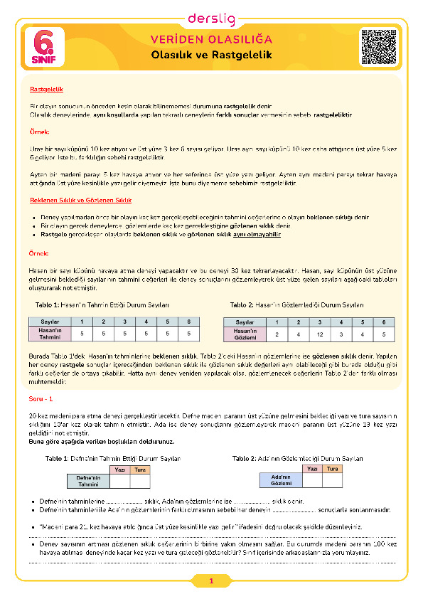 Olasılık Deneyleri ve Deney Sonuçlarını Değerlendirme
