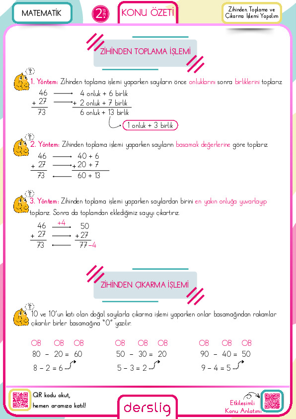 Zihinden Toplama ve Çıkarma İşlemi Yapalım