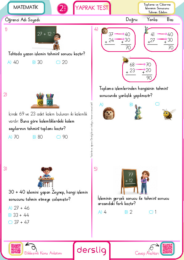 Toplama ve Çıkarma İşleminin Sonucunu Tahmin Edelim