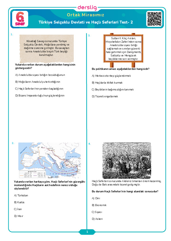 Türkiye Selçuklu Devleti ve Haçlı Seferleri Test- 1