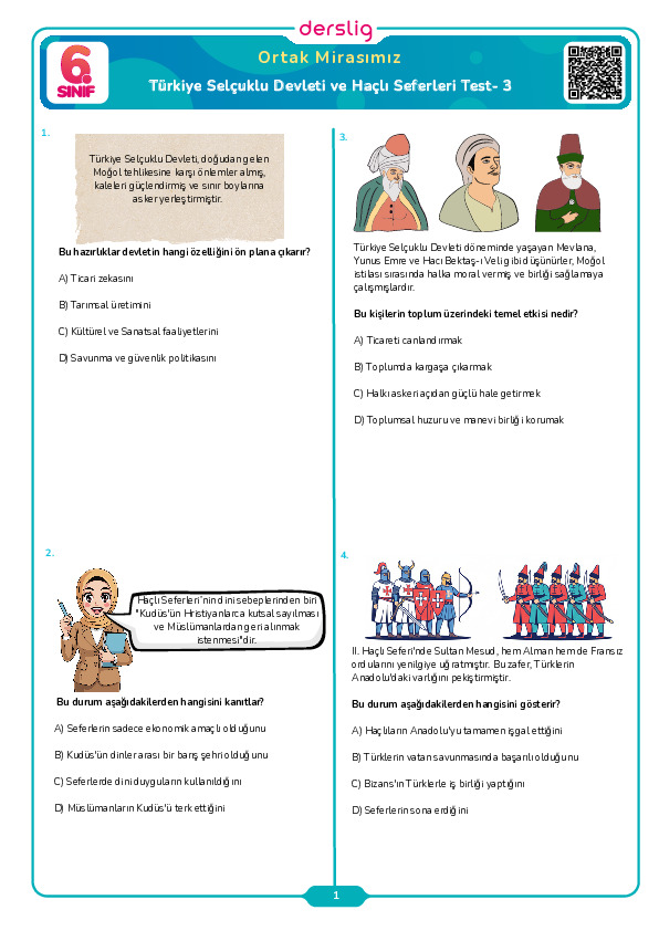 Türkiye Selçuklu Devleti ve Haçlı Seferleri Test- 1