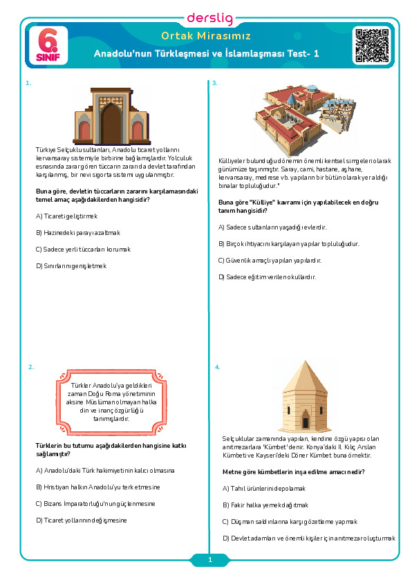 Anadolu'nun Türkleşmesi ve İslamlaşması Test- 3