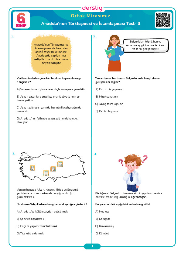 Anadolu'nun Türkleşmesi ve İslamlaşması Test- 1