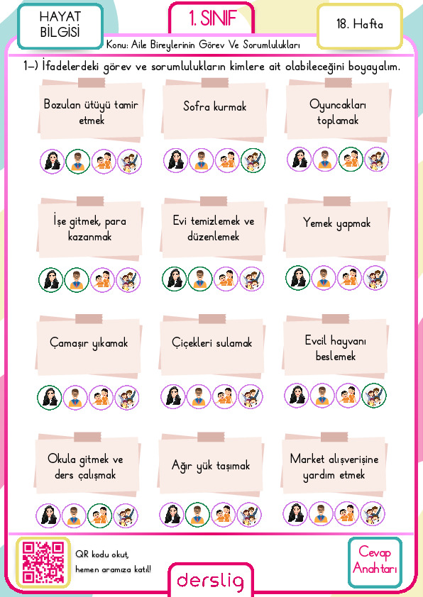 1. sınıf 2. hafta ödevi cevap anahtarı