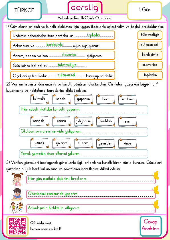 1. sınıf 2. hafta ödevi cevap anahtarı
