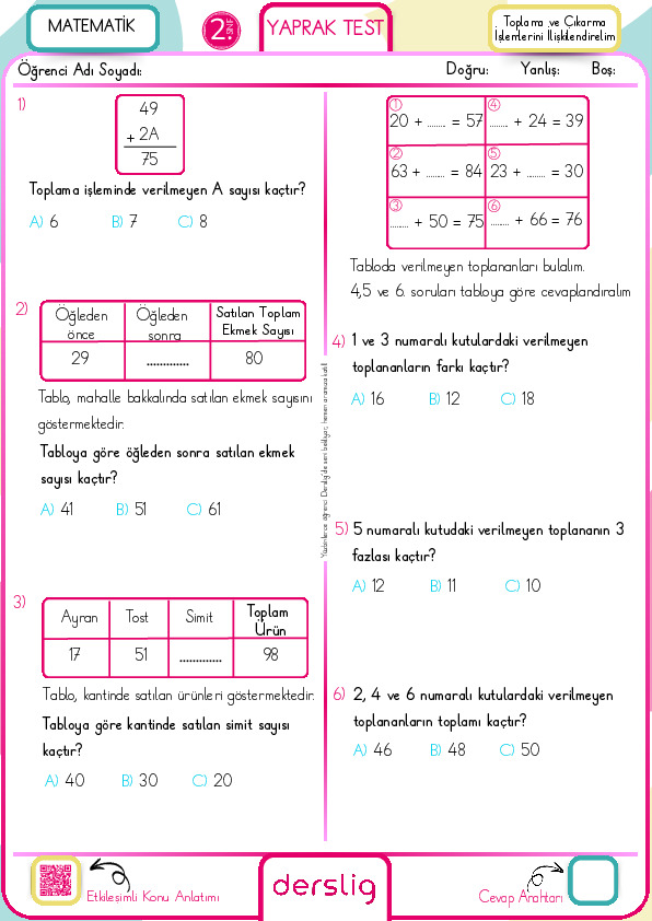 Toplama ve Çıkarma İşlemi İle İlgili Problemler