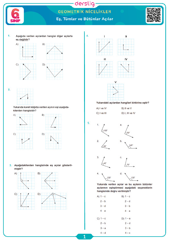 Eş, Tümler ve Bütünler Açılar