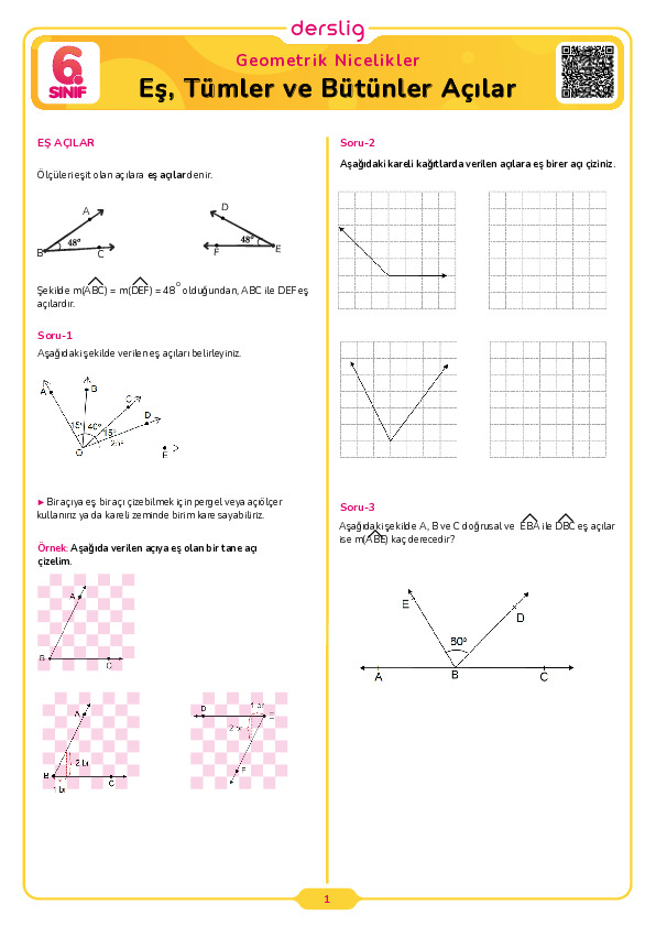 Eş, Tümler ve Bütünler Açılar