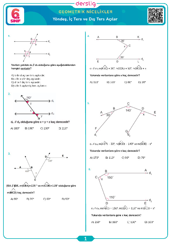 Yöndeş, İç Ters ve Dış Ters Açılar