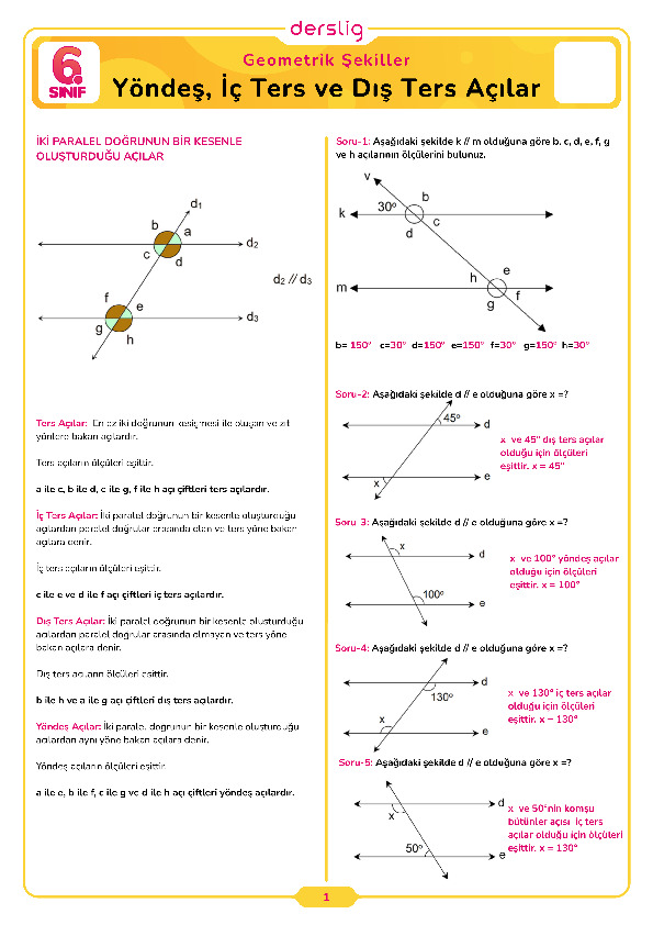 5. Sınıf 1. Tema 12. Konu Özeti (İki doğru ile oluşturulabilecek açılar) Cevap Anahtarı