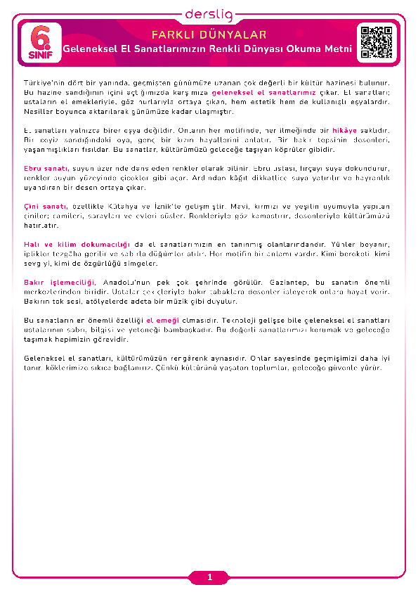 6. Sınıf 1.Tema Bilimin ve Kültürün Taşıyıcısı Okuma Metni