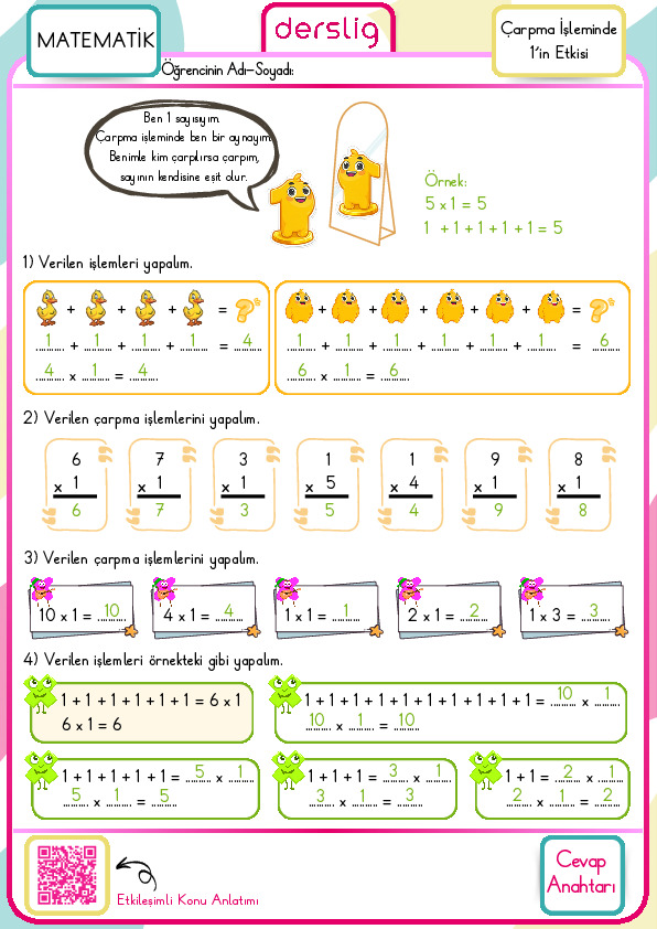 Çarpma İşlemi Yapalım Cevap Anahtarı