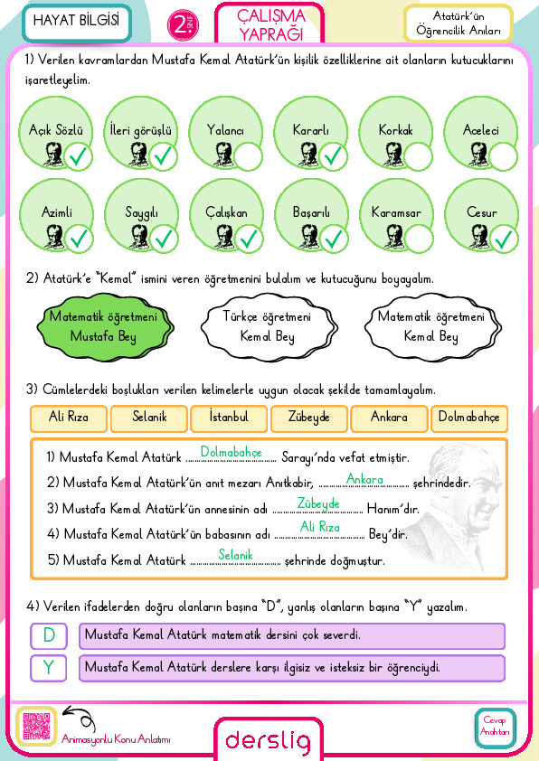 2. Sınıf Millî Gün ve Bayramlarımız Cevap Anahtarı