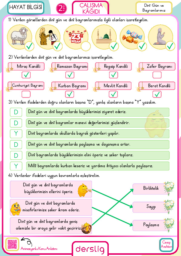 2. Sınıf Millî Gün ve Bayramlarımız Cevap Anahtarı