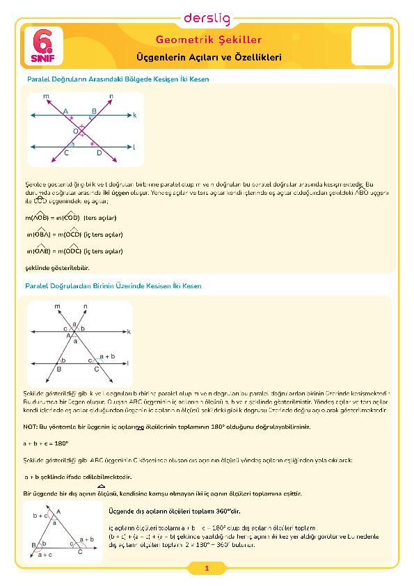 5. Sınıf 1. Tema 16. Konu Özeti (Üçgenler) Cevap Anahtarı