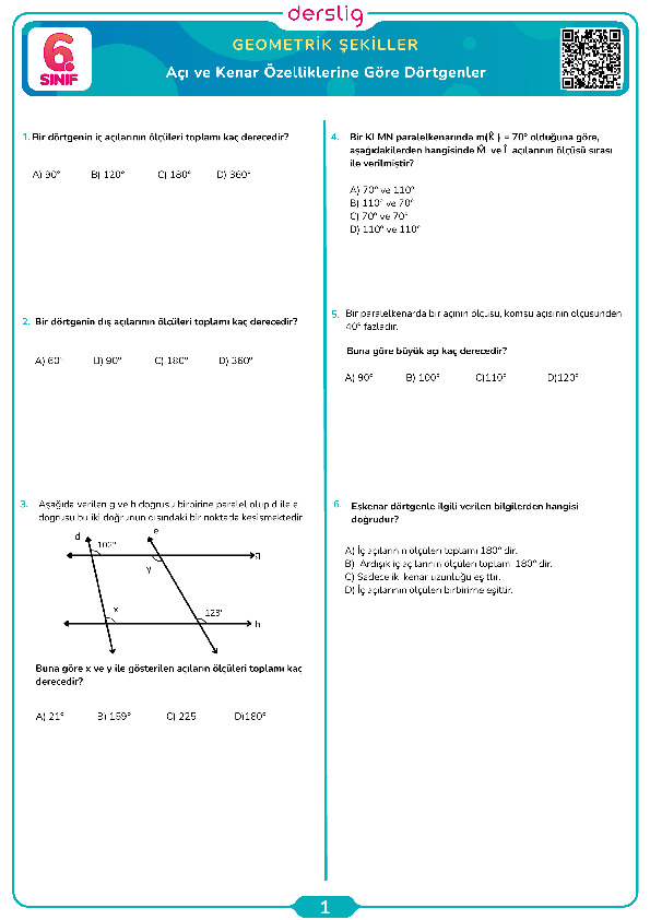 Açı ve Kenar Özelliklerine Göre Dörtgenler